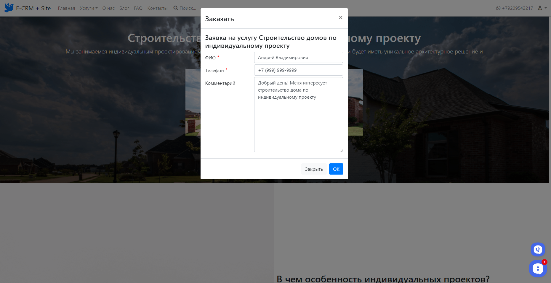 1. Клиент самостоятельно заполняет форму заявки на услугу на любом из лендингов. После отправки заявки, клиент получает сообщение, что заявка отправлена и заказ успешно создан: